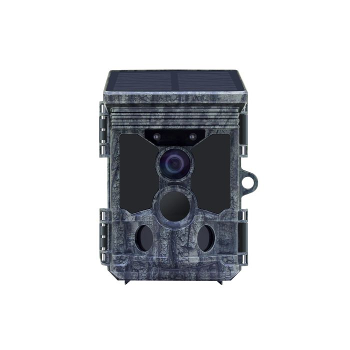 The integrated solar panel charges the internal battery during daylight. When sunlight drops, the battery provides continuous power so the camera remains operational. This combination supports long unattended deployments in remote areas.