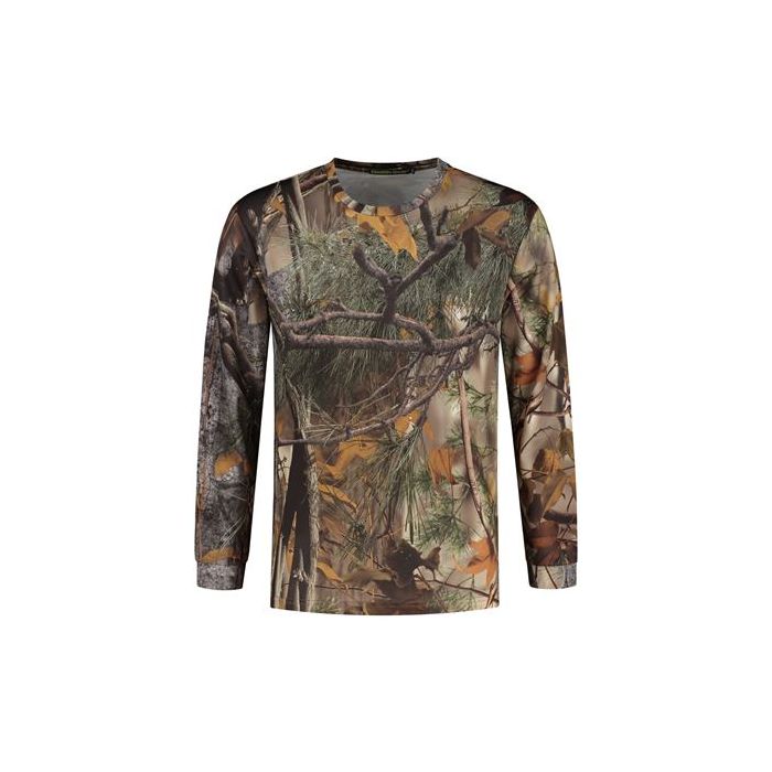The Stealth Gear long-sleeve T-shirt in camo style is perfect for anyone who wants to blend into nature during outdoor adventures. This shirt features a realistic forest print, surrounding you with the calm and beauty of the woods. The light brown tones make it an ideal choice for any outdoor gear. Whether you're a dedicated wildlife photographer or simply enjoy long walks in nature, this shirt offers the perfect mix of style and function.