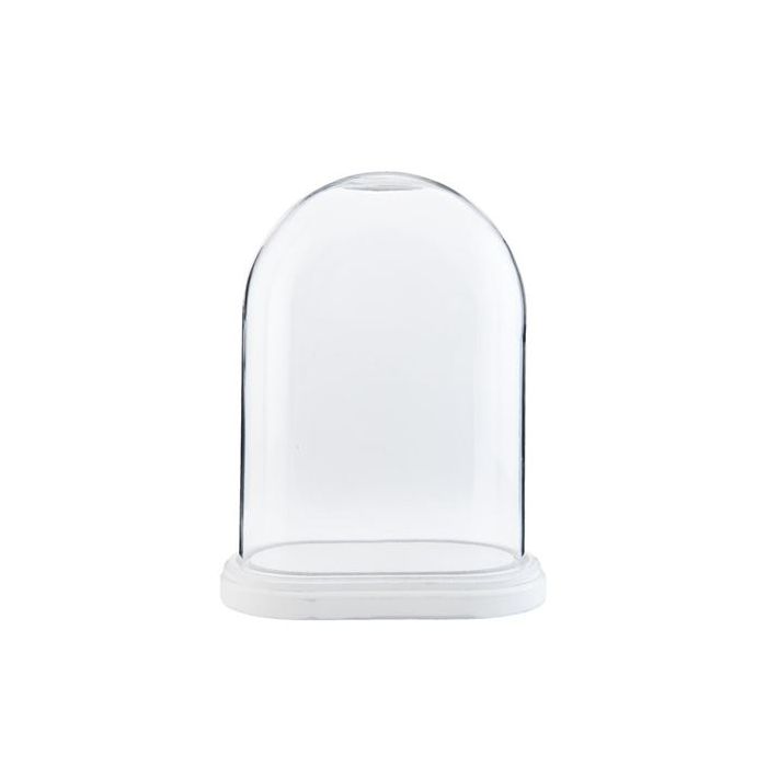 Crafted from robust glass and anchored on a wooden base, this cloche exudes durability and class. The crystal-clear glass offers an unobstructed view of your decorations, while the warm wooden base brings a calm, natural vibe that fits seamlessly with a variety of interior styles. With a spacious size of 26 cm by 15 cm and a height of 33 cm, it serves as the ideal display piece.