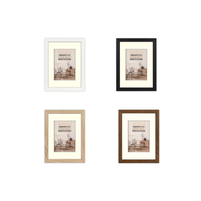 Because all photo frames belong to the same Malmo collection, they form a calm and stylish unity. The mix of white, black, natural, and brown makes it easy to match the frames with different interiors – from bright Scandinavian and modern to warm and classic. The included passe-partouts give each photo a luxurious touch and provide an attractive framing, ideal for photo walls, themed presentations, or product displays in your (online) store.