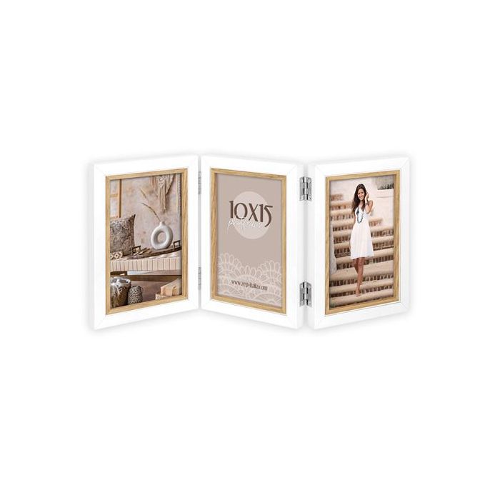 The CV392 from Zep Italia is a photo frame with an elegant white finish, perfect for showcasing your most treasured memories. Display 3 photos sized 10x15 cm to add a personal touch to your space. Featuring a refined wooden look, this frame radiates timeless elegance. Its overall dimensions, including the frame, are 38x17.5 cm, making it both striking and subtle—ideal for any interior.