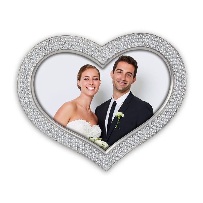 The Zep Photo Frame KV3357 Delon 13x18 cm brings your photo to life in a carefully crafted setting. Place your favorite snapshot in this 13x18 cm frame and enjoy the classic elegance of this glossy metal frame with glitter decoration and a playful heart shape. Thanks to the velvet backing, the frame stands firmly as a tabletop piece and shines at both birthdays and anniversaries. Perfect for sentimental gifts that radiate love, with a total size of 20x17 cm (w×h) including the frame.