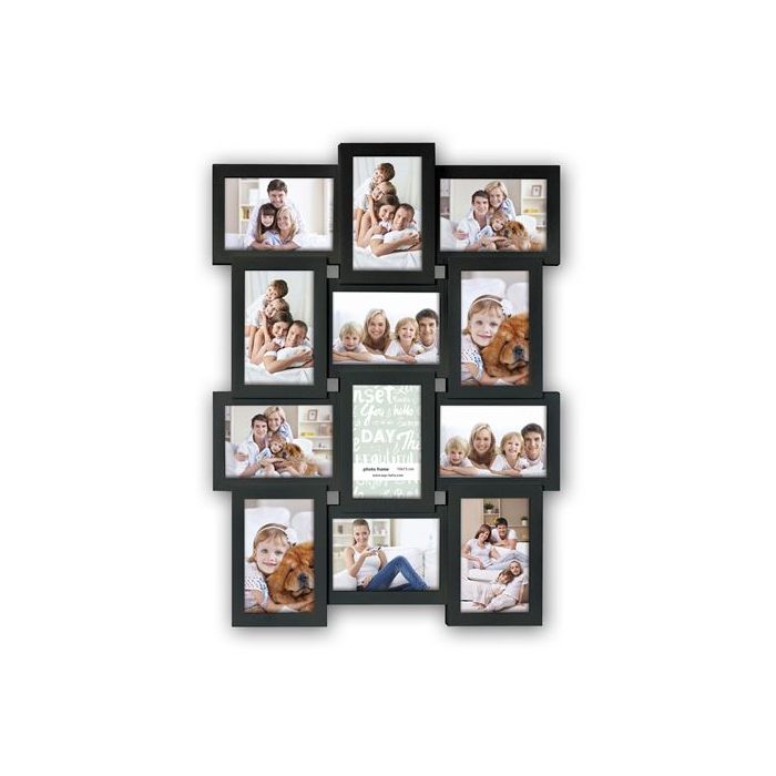 Protect your precious memories with the stylish PI05284 photo frame from Zep Italia, designed to display up to 12 favorite photos. This frame holds 12 photos sized 10x15 cm, evenly divided into 6 portrait and 6 landscape formats. Its sleek, modern black design offers a timeless look that fits perfectly in any interior. With overall dimensions of 58.5x44.5 cm including the frame, this photo frame is ideal for vertical wall mounting, ensuring your photos always get the attention they deserve.