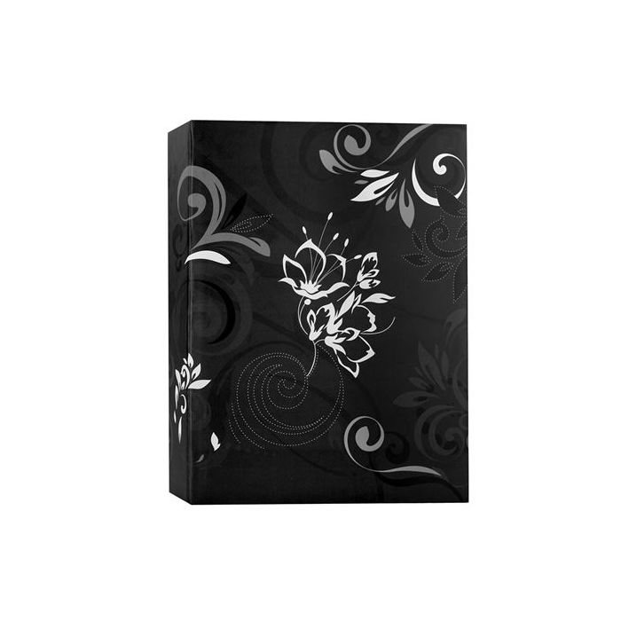 Discover the Zep Slip-in Album EB57200B Umbria Black, perfect for stylishly preserving all your cherished memories. This photo album from Zep Italia holds up to 200 photos sized 13x19 cm. Its elegant finish features a black paper cover adorned with grey and white floral prints, making this album a true eye-catcher.