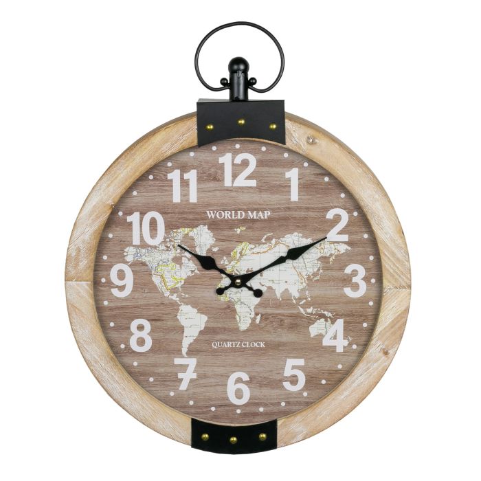 Experience the unique charm of the Zep Wall Art Clock Julien HHC626. This stunning clock combines wood and metal, featuring a detailed world map on a warm brown background that creates a breathtaking contrast. Measuring 40 x 50 x 6.5 cm, it adds timeless design and style to any room you hang it in.