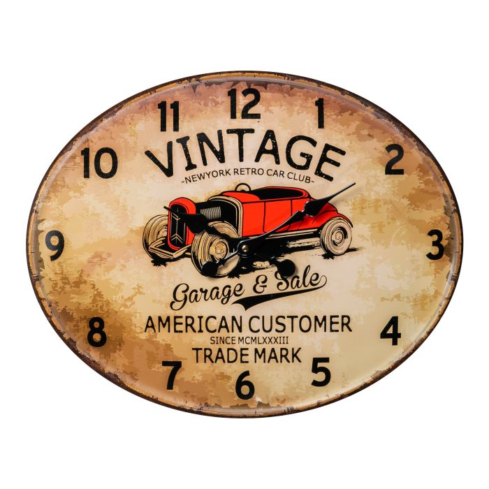 The Zep Wall Art Clock Roland HHC738, measuring 39x48x2 cm, is a stunning clock designed by Zep Italia. This metal clock exudes timeless vintage charm with its stylish classic car image. The subtle, slender hands move almost invisibly over the intriguing Wall Art design, creating a unique blend of function and style.