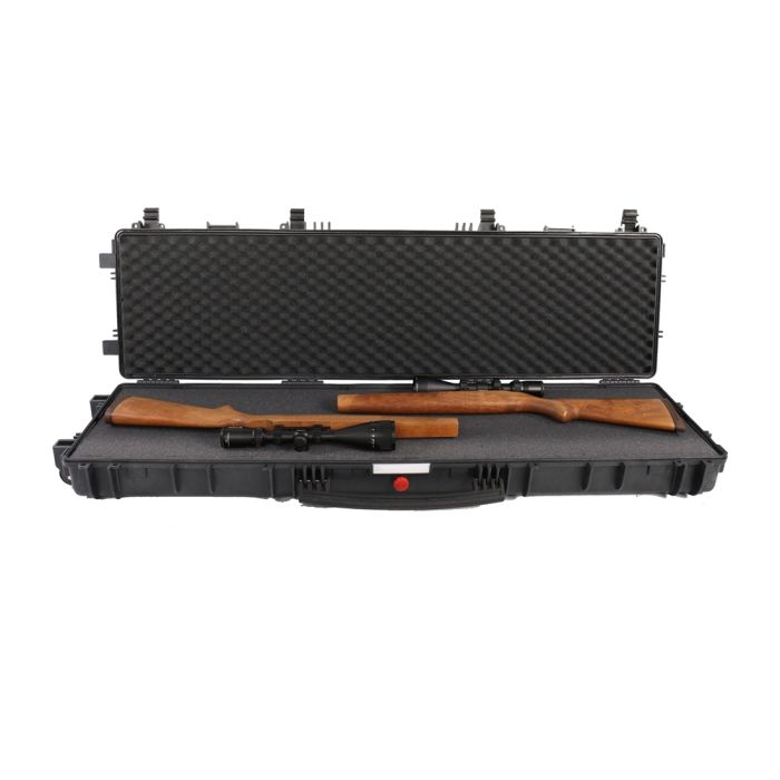 The Explorer Case RED13513.B is your perfect black transport and rifle case, specially designed for hunters who want to carry their rifles and accessories safely. With impressive internal dimensions of 1350 x 350 x 135 mm, this case offers plenty of space and protection for all your valuable gear. The RED gun cases are not only waterproof and dustproof but also shock- and impact-resistant. While these RED cases aren’t certified like the regular Explorer Cases, they still provide the toughness you expect from a transport case. With the RED Line, Explorer Cases offers an affordable alternative without compromising on quality.