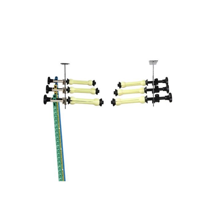 The supports are 32 cm high and up to 21 cm deep, with a maximum diameter of 7 cm. The double chains are 1.70 meters long, and the roller holders extend 12 cm beyond the roll. The system is perfect for up to 2 vinyl rolls. Looking for a solution for rolls of 3.56 meters? Contact us quickly for personalized advice!