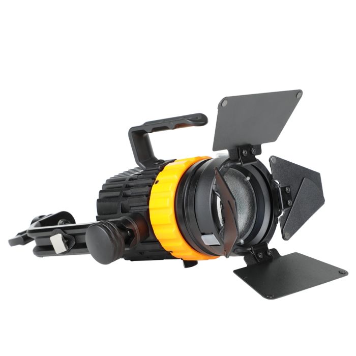 Thanks to the innovative fresnel filter technology, the P-5AD delivers impressive results where traditional spotlights fall short. Whether you’re in a theater, TV studio, or challenging film location, this lamp provides the power you need without the heat. The horizontal and vertical angles are easy to adjust, and with the standard spigot mount, it fits nearly any stand. The sturdy metal arm includes a dedicated holder for the controller and an optional V-mount battery.
