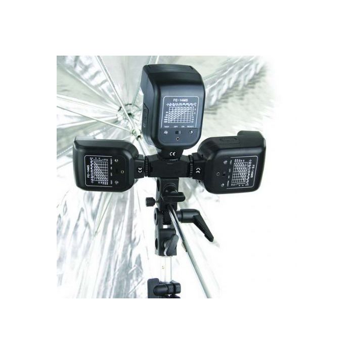Discover the versatility of the Falcon Eyes Triflash HS3-57P, the perfect solution for photographers seeking flexibility and ease of use. This handy accessory supports three camera flashes and features a lightweight design, ideal for taking on location without compromising functionality. With its spigot equipped with a 1/4" female thread, this Triflash offers a wide range of mounting options.