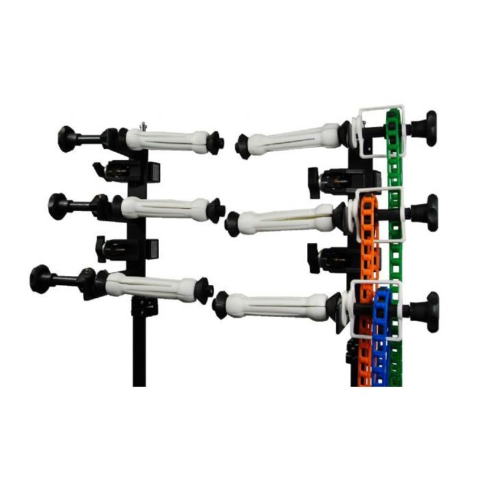 The versatile Linkstar Background Support makes hanging and effortlessly switching up to 3 backgrounds a breeze. You easily mount this system to your wall or ceiling, then place the rolls. Simply slide the roll holder into the tube or core of the background roll and tighten it. The holder expands for a secure fit. With the included chains, you can switch rolls smoothly. You can set up the system at any width you want and install it at least 10 cm from the ceiling. Thanks to the supplied guides, the chains hang neatly in place.