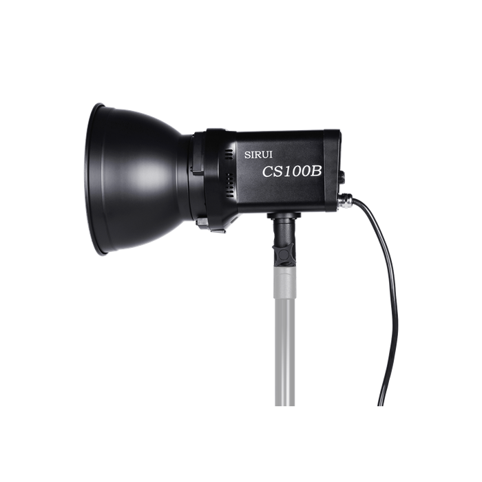 You can easily mount the CS100B using the spigot connection on any light stand. The integrated bracket lets you rotate the lamp 360 degrees in any position. Metal knobs on the side lock the chosen angle. The bracket also features an umbrella hole. The CS100B comes with a protective cover, reflector, and 4-meter power cable.