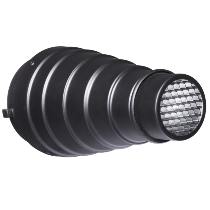 With your purchase, you also receive a honeycomb grid with adapter and a set of 5 color filters. This all-in-one package lets you get started right away and shape the light beam exactly how you envision it.