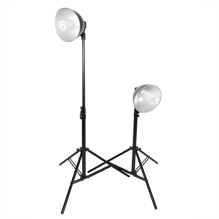 This fantastic lighting kit comes with everything you need to get started: two lamp holders with cables, two 85W spiral lamps, two reflectors with a 26 cm diameter, two lamp stands adjustable up to 210 cm, and a handy carrying case. All delivered in a stylish color package to complete the set.