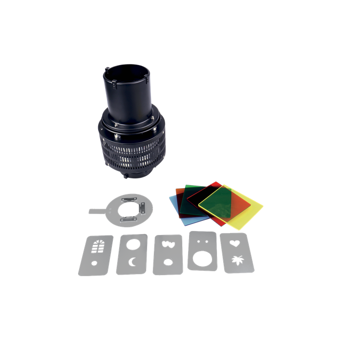 - 5x Gobo (moon, window, heart(s), dot(s), autumn leaf)