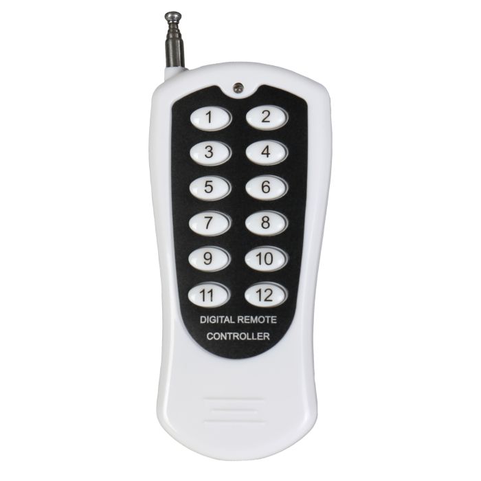 The extendable antenna ensures you get the best connection to your background system. The layout is simple: each row of numbers controls one roll. So buttons 1 and 2 operate roll 1, buttons 3 and 4 control roll 2, and so on. A single control channel means you can get started right away as soon as you insert the batteries.