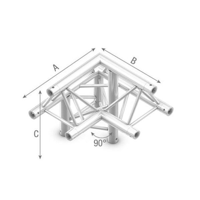 This corner is equipped with a robust 90° truss angle, specially designed to help you realize and strengthen your truss setups in various configurations without compromising safety or durability.