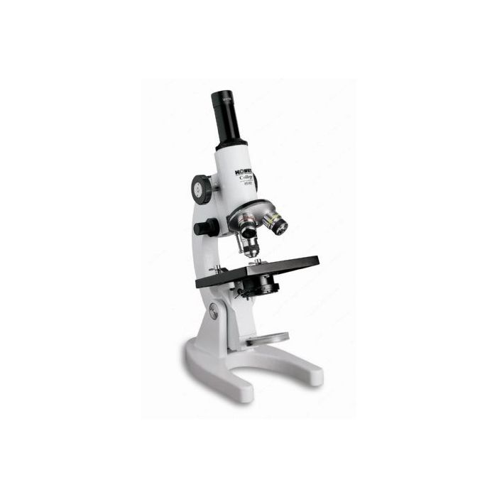 - Three achromatic objective lenses: 4X (60X), 10X (150x), 40X (600X)
